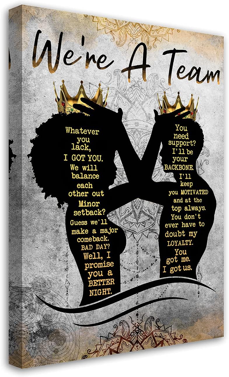 Amazon Com African American Wall Art Black King And Queen Canvas Print Painting Picture Artwork Black Girl Inspirational Quotes Wall Decor For Living Room Bedroom Office Home Decor Framed Ready To Hang 16x24inch